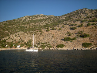 10 metreye demiri bırakıyoruz. Tornistanla geri geri giderken her seferinde rüzgar bizi sığlığa doğru itiyor. Biraz topla, biraz geri git derken demir harika tutuyor. Yarım yol tornistanda bile bizi bırakmıyor. Suat ile Sinan bota atlayıp motorla koltuk halatını kıyıya götürüp bir kayaya bizi bağlayıveriyorlar. Motor yata tam paralel olamadık ama olsun. Demirimiz iyi tuttu, koltuk halatını da bağladık. Şimdi deniz ve makarna zamanı. Pozisyonumuz 36046'.320N; 28001’.427E .